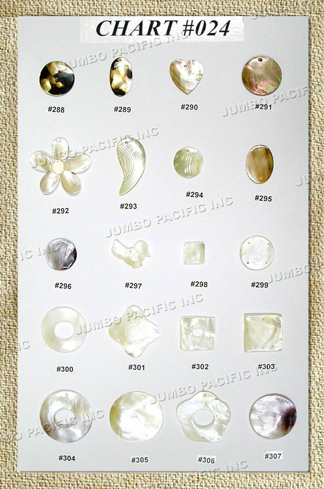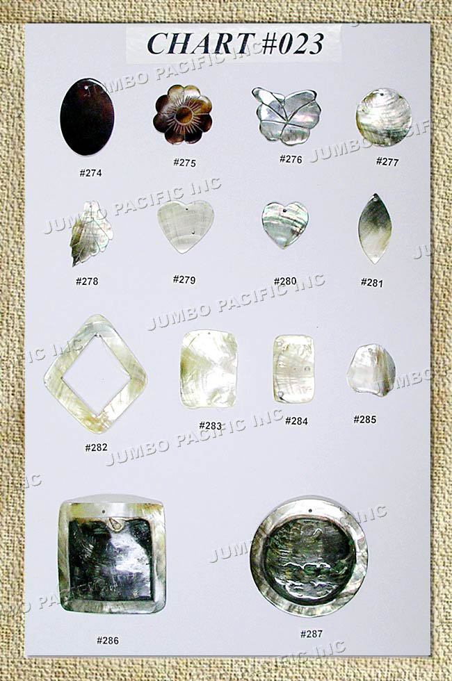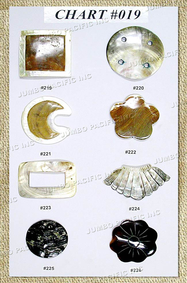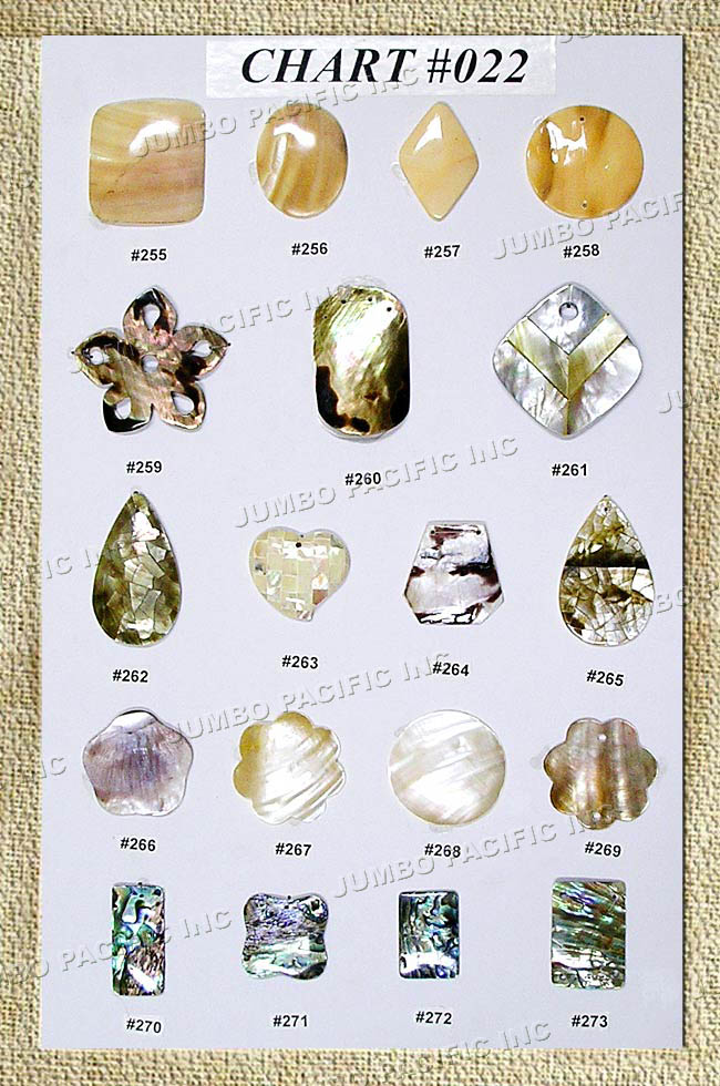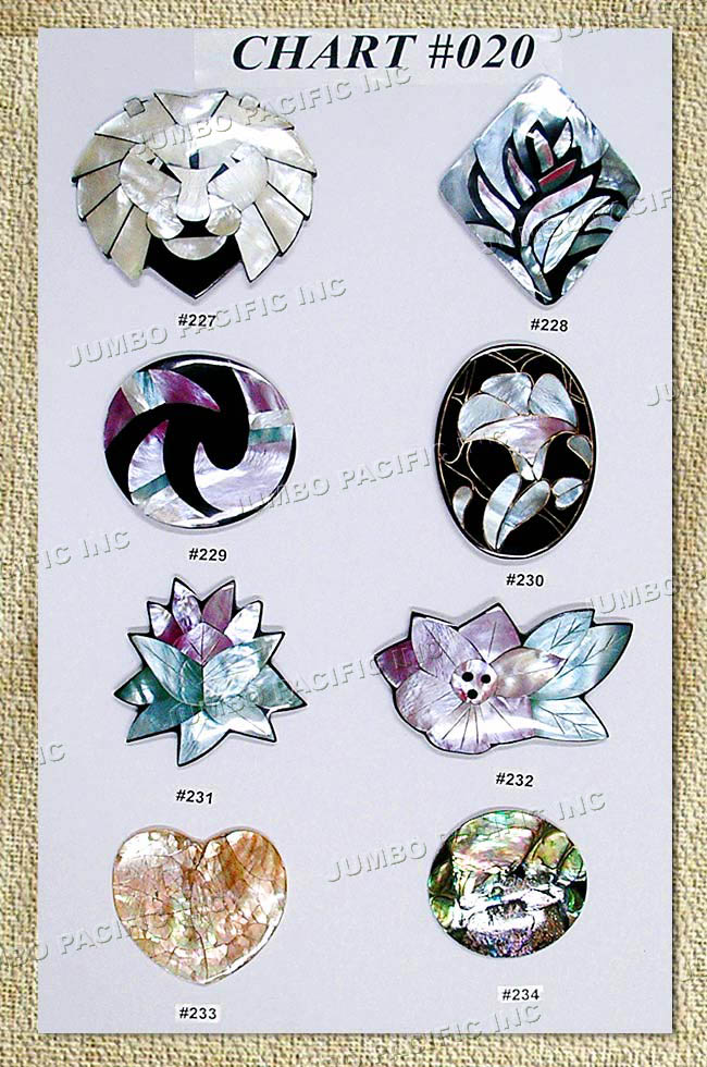 Assorted shell inlay for pendants, brooches and hairclips.