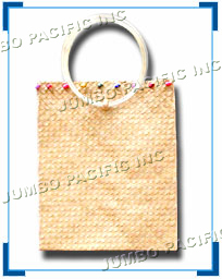 Materials: Buri handbag with plastic tube ring handle and pastel macaroni beads