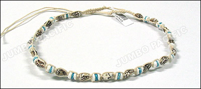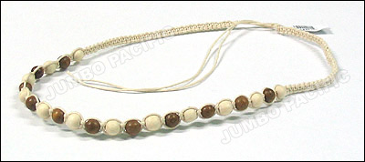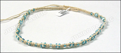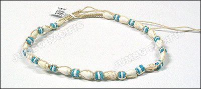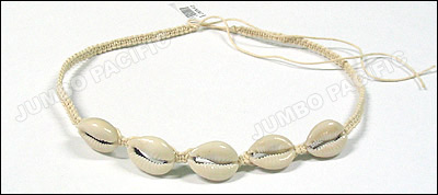 made of shoe thread with cut sigay, white wood bead, nasa shell, glass