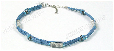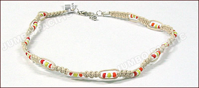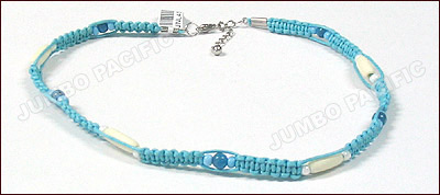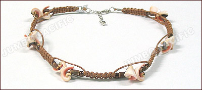 made of shoe thread with cut sigay, white wood bead, nasa shell, glass